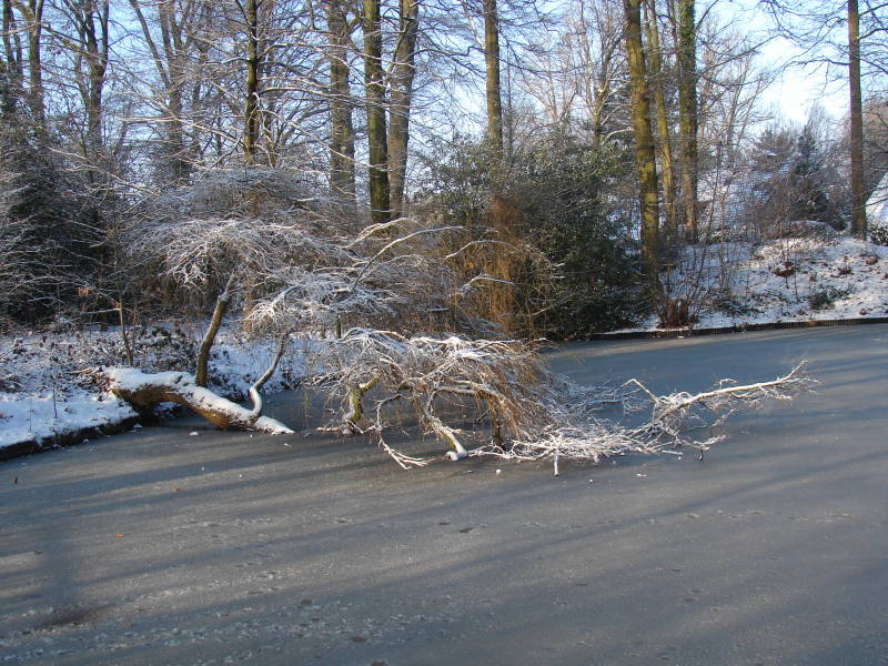Kerkebos loopt, doorgebroken. Achter deze doorbraak ontstond een wiel, waarna de dijk opnieuw is aangebracht om het wiel heen. Dit wiel is nu nog vrij centraal gelegen in het Kerkebos dat aan de oostzijde begrensd wordt door de Nederlands Hervormde Kerk aan de noordkant door de Kerkdijk, met daarachter de Donge.
