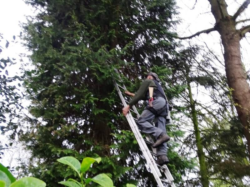 Foto onder : Plaatsen kunstnest voor ransuilen in 's Gravenmoer.