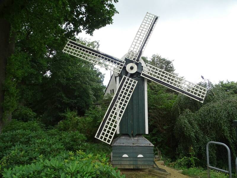 Foto’s onder:Ter gelegenheid van het 700 jarig bestaan van 's Gravenmoer, in 1993, is de korenmolen nagebouwd en in een tuin aan de Grutterijstraat geplaatst.