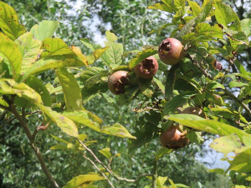 Foto onder: De eerste vruchten die aan de bomen in het mini voedselbos verschijen zijn onder anderen de vruchten aan de mispelboom.