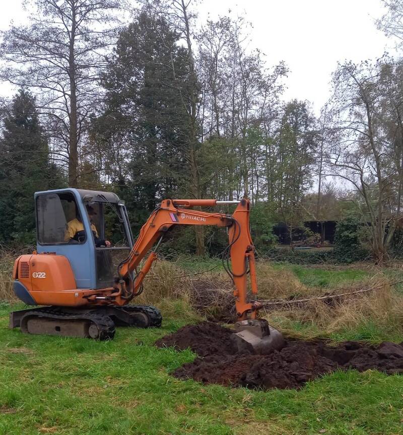 Foto onder: Voor het uilenbosje zijn 2 zuileiken een conifeer, een dennenboom en een thuja geleverd.