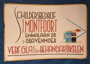Foto onder: Het logo van het voormalige schildersbedrijf J.Montfoort aan de Emmalaan.